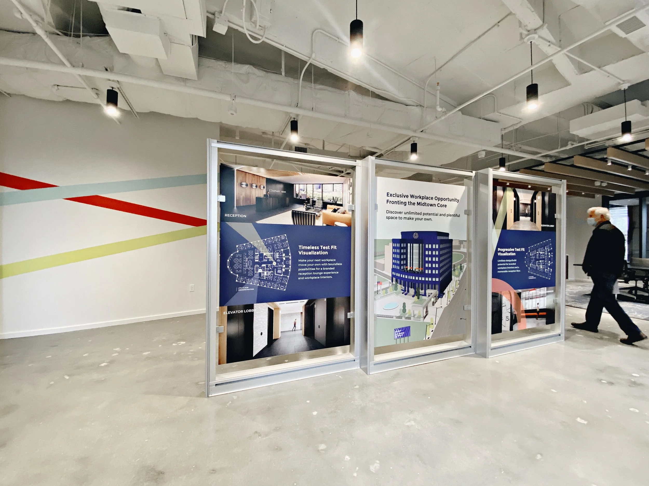 Crafting a strong story to position 1420P at “The Gateway to Midtown”, we articulated the vision for a wholly controllable headquarters opportunity with hand-selected amenities at the entrance to the Arts District. The resolved visual identity system depicts the building’s iconic wedge-shaped location, tying into the energy and flexibility associated with North Midtown’s growing landscape through an emotive palette and bold pattern. Working hand-in-hand with the lead architect, we brought the brand to life in the virtual built environment through a strategic series of test fit and amenity renderings as well as fly-through videos to demonstrate its boundless potential for customization. Successfully launching the opportunity to market for pre-leasing, we designed a keepsake brochure, video-centered website and targeted email marketing campaign. Ensuring an equally impressive, in-person tour experience, our last step was designing a custom free-standing marketing center experience for 1420P’s remarkable four-story rotunda space.