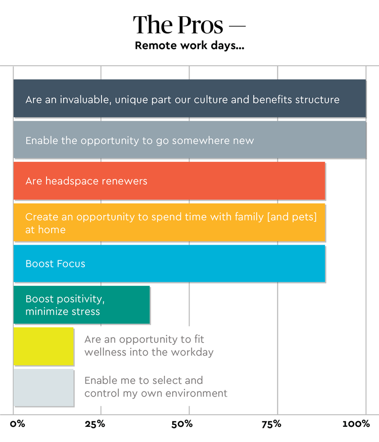 To uncover, extract and share factual, raw data points to pinpoint the pros and considerations for incorporating remote time into the workplace.