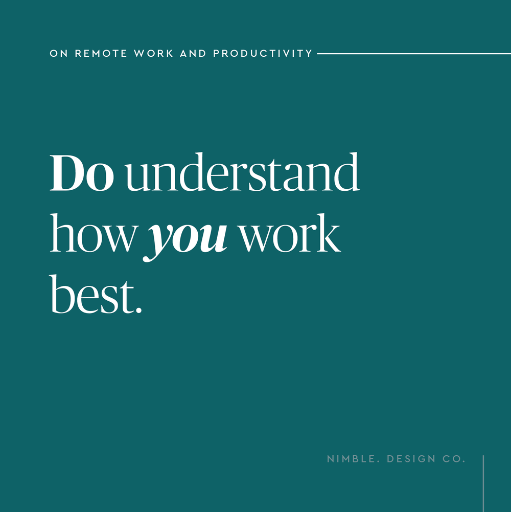 We’ve identified for Nimble., remote time is most effective for heads-down tasks. Design reviews are less productive when we’re not all present in the same room delivering feedback and receiving verbal and visual communication together. So, we reserve design reviews for studio time only.