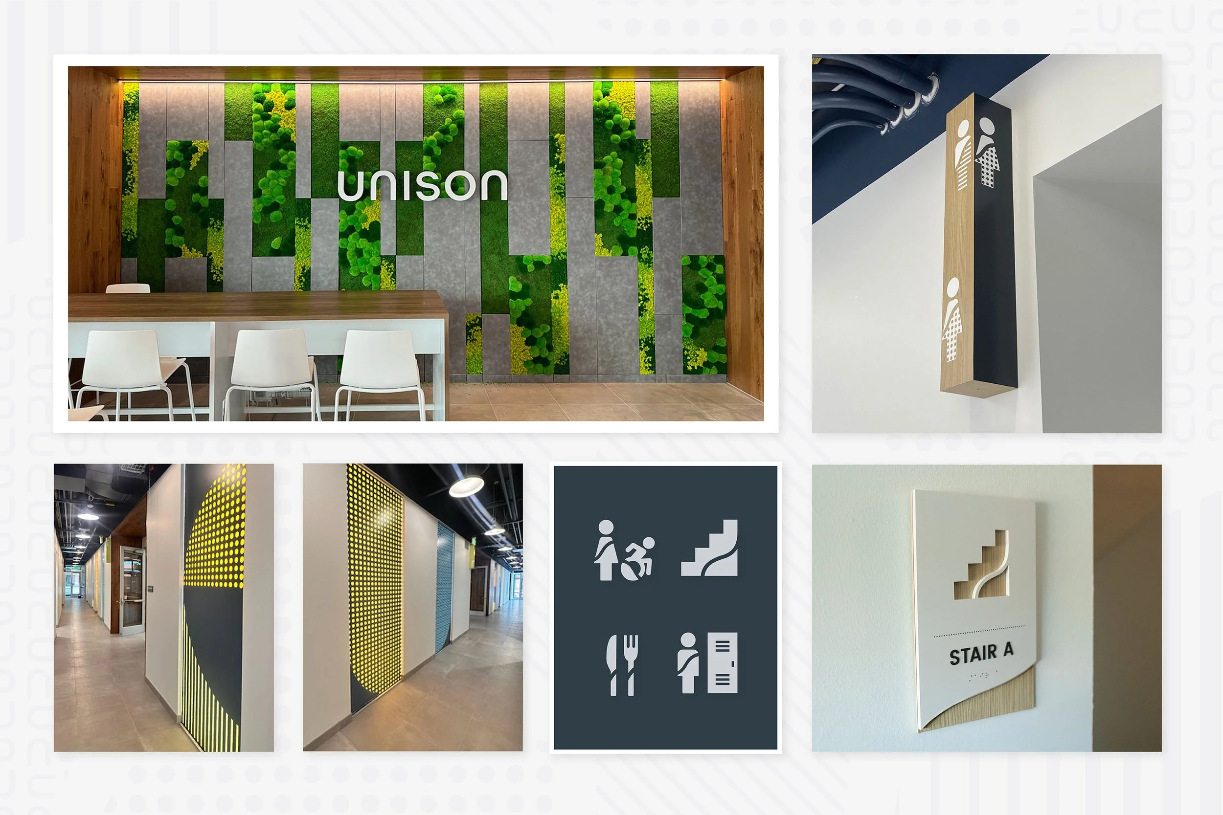 Unison is a three-building office destination located on Elliott Bay’s waterfront with views of the Puget Sound and Olympic Mountains. Undergoing revitalization directed by The RMR Group, Nimble. is thrilled to have led discovery, naming, brand development, brochure and interactive website design to accentuate a reenergized on-site experience tailored to Unison’s next generation of life science and tech-driven companies. The name “Unison” was selected to reveal the connected campus-like environment that the workplace will exhibit in 2023 paired with a story of mutual forward momentum. The fluid, organic shapes in the brand mark represent the three buildings coming together with shared amenities and direct connection to the bay. As a whole, the brand strikes a balance between the concepts of wellness and energy through the introduction of watercolor accents, large-scale renderings and elegant illustrative details that feel light and refreshing. We remain deeply engaged in extended website development as well as signage and wayfinding design and consulting.